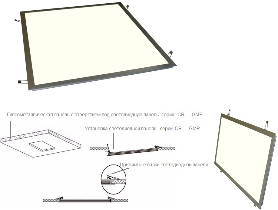 Серия GMP: предназначена для установки в гипсометаллические панели-потолки в заранее подготовленное (вырезанное) отверстие.