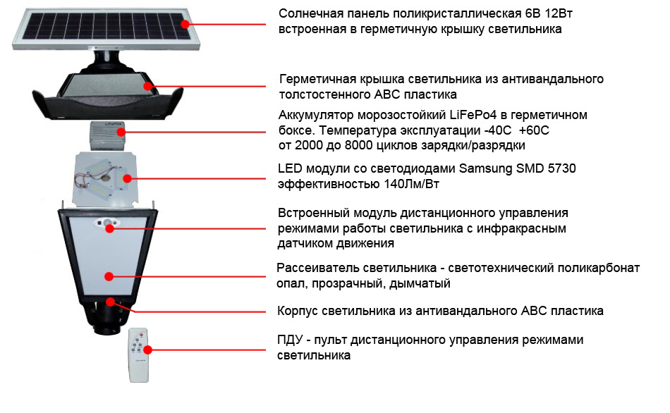 Назначение: парковые светодиодные светильники серии RETRO на солнечной батарее разработаны для надежной автономной и бесперебойной работы в экстремальных условиях с учётом различных климатических зон и регионов России, предназначены для замены традиционных уличных светильников с питанием от сети. Они отлично подходит для освещения участков и обьектов, на которых затруднен или невозможен подвод электрической энергии.