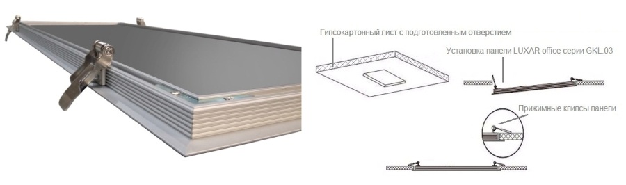 LUXAR office серии GKL.03 - тип монтажа врезной в ГКЛ (гипсокартон)