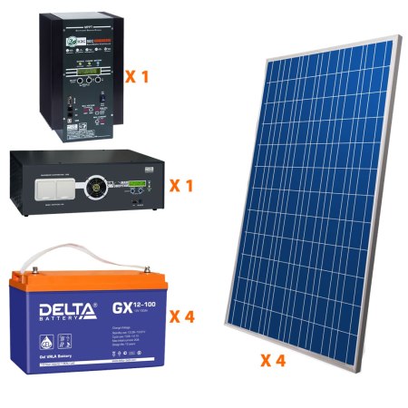 1) Солнечная батарея Delta BST 250-24P (250Вт, 24 В) - 4 шт 2) Солнечный контроллер КЭС 200/60 (20а) - 1- шт 3) АКБ Delta GEL 12100 (100 а*ч) - 4 шт 4) Инвертор МАП SIN PRO 3 кВт (12В/24В/48В, чистый синус, кратковременная мощность до 5250 Вт) - 1шт 5) Полный комплект кабелей и коннекторов. 7) Крепеж (либо на стену, либо на крышу) 8) Схема соединения и описание.
