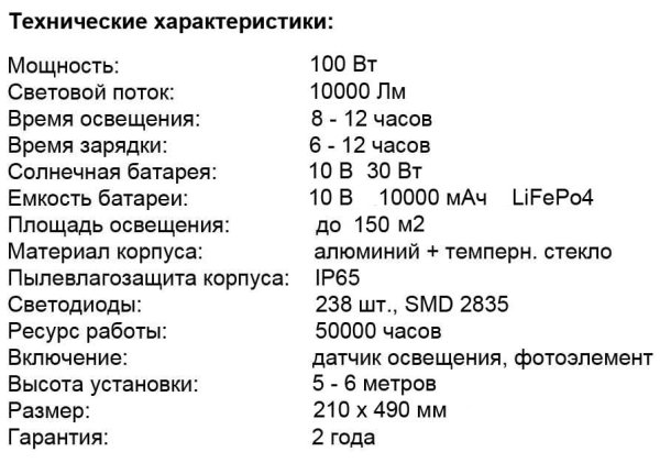 SOLAR SPL 100W - консольный светильник на солнечной батарее