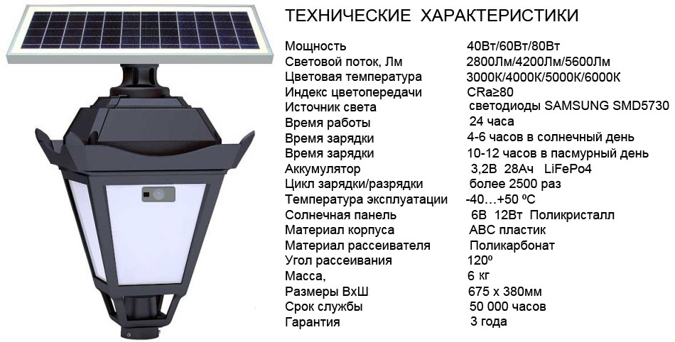 Назначение: парковые светодиодные светильники серии RETRO на солнечной батарее разработаны для надежной автономной и бесперебойной работы в экстремальных условиях с учётом различных климатических зон и регионов России, предназначены для замены традиционных уличных светильников с питанием от сети. Они отлично подходит для освещения участков и обьектов, на которых затруднен или невозможен подвод электрической энергии.