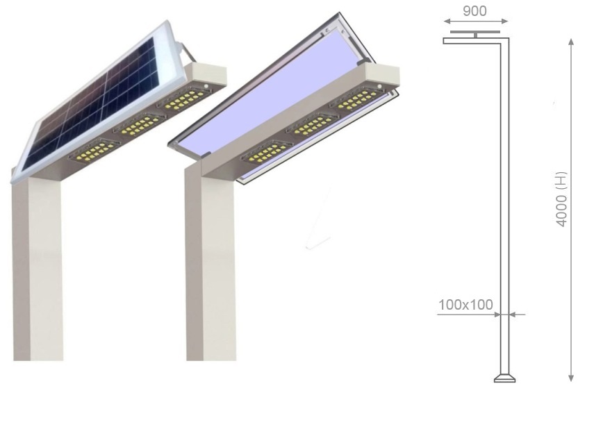 Комплект поставки: 1. Закладное устройство для опоры 2. Опора освещения высотой 4м 3. Автономный светильник на солнечной батарее